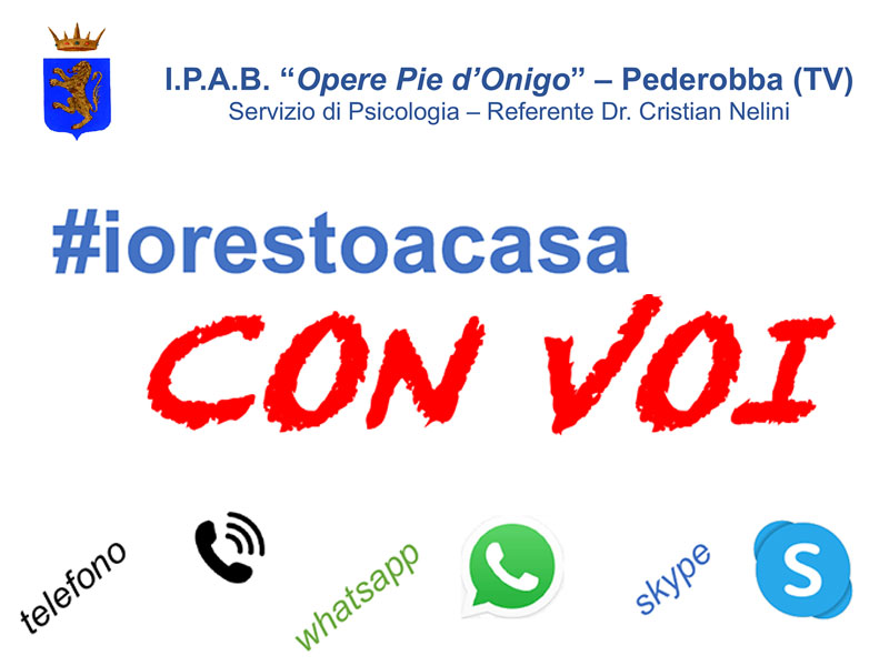 #iorestoacasa CON VOI – Servizio psicologico gratuito per Ospiti, Familiari, Personale e CittadiniMarzo 23, 2020L’I.P.A.B. Opere Pie d’Onigo di Pederobba (TV) offre la possibilità di accedere in sicurezza a colloqui di sostegno psicologico per OSPITI…
